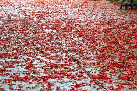 road with gulmohar petals